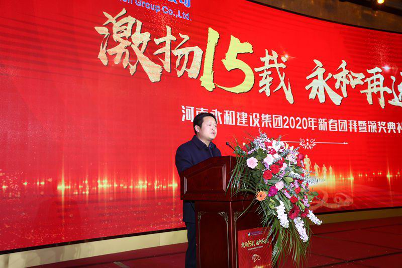 團(tuán)拜會(huì)在開場(chǎng)舞《我和我的祖國(guó)》的激情帶動(dòng)下正式拉開帷幕。首先,河南永和建設(shè)集團(tuán)黨支部書記、董事長(zhǎng)孔德穩(wěn)向大家致以新春祝福。對(duì)2019年工作所取得的成績(jī)充分肯定的同時(shí),也對(duì)2020年集團(tuán)公司的發(fā)展作出了規(guī)劃部署,與全體員工共同展望美好愿景。